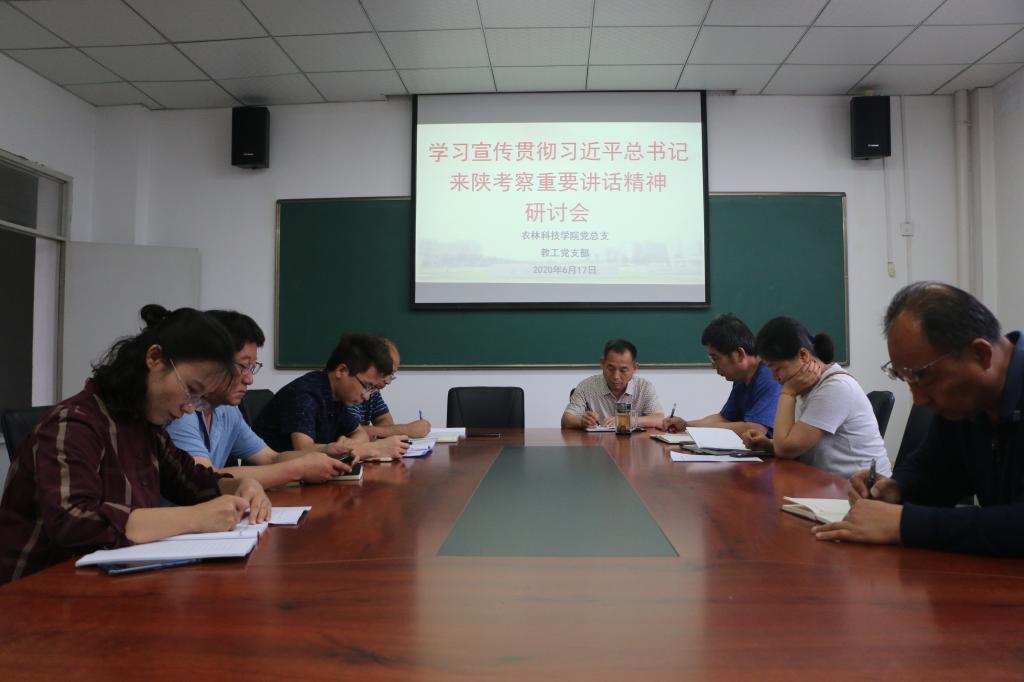 会后,教工党支部、员工党支部分别围绕“切实把增强‘四个意识’、‘四个自信’做到‘两个维护’落到行动上”和“只争朝夕、真抓实干,在新时代各项工作中取得新气象新作为”两个题目,展开研讨。大家纷纷发言,交流自己在学习习近平总书记来陕考察重要讲话精神的收获体会,一致表示,要努力克服新冠肺炎疫情带来的不利影响,把习近平总书记来陕考察重要讲话和重要指示落实到具体工作中,立足岗位,做好本职工作,只争朝夕、真抓实干,在各项工作中,争取新作为,取得新气象,共同为谱写陕西新时代追赶超越新篇章做出自己的贡献。(撰稿:388vip太阳集团 赵婷峰 审核:王俊全)