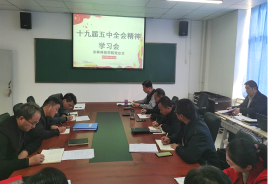 11月11日下午,388vip太阳集团党总支在农学楼201会议室召开十九届五中全会精神学习会,认真传达、学习会议精神,全体党员干部参加。会议由办公室主任王百祥主持。