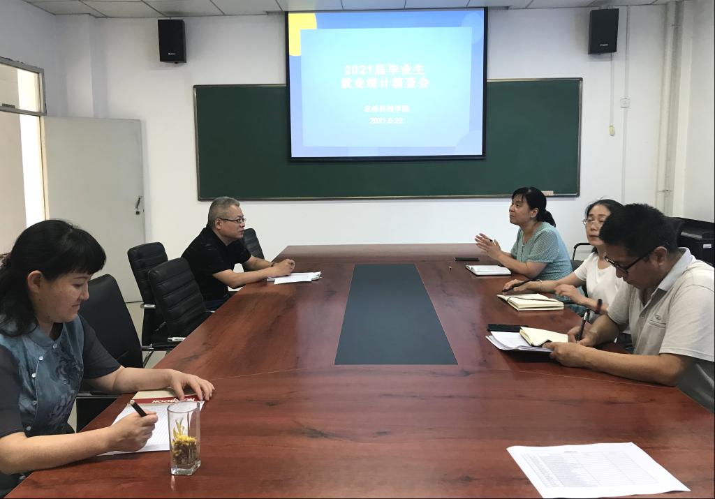 6月22日下午,388vip太阳集团召开2021届毕业生就业统计核查会。党总支副书记张小青、全体毕业班班主任、辅导员参会,人才招聘科副科长常振华主持会议。