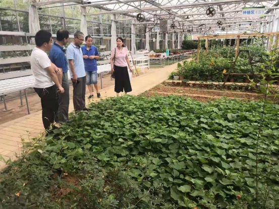 杨世选对刘经理一行的到来表示热烈欢迎,并详细介绍了公司的基本情况。随后,一同参观了公司的园艺实训基地、智能日光温室、葡萄酒加工实训室等,刘经理对公司的团队队伍、专业设置及实训条件等给予了高度肯定,并就园艺实训基地的甘薯种植进行了技术指导和探讨交流。