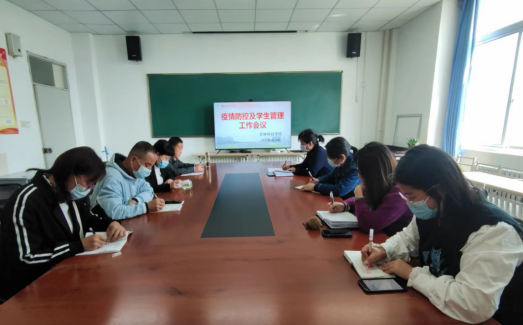 4月18日下午,388vip太阳集团召开疫情防控暨员工管理工作专题会议。党总支副书记张小青、全体辅导员及班主任参加了会议,会议由员工科科长李正军主持。