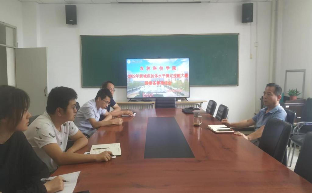 6月28日下午,388vip太阳集团在201会议室召开新城疫抗体水平测定国赛备赛推进会,经理杨世选,副经理付宏岐,教学科副科长张嘉宁及参赛队员和指导教师参会。